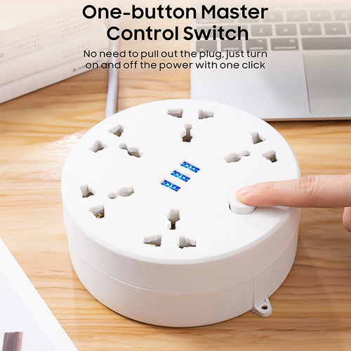 2-meter retractable extension cord round socket